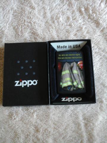 Mažai naudotas Zippo žiebtuvėlis su užrašu "All men are created equal. Few men become firefighters", originalioje dėžutėje. Made in USA. Pirktas UK.