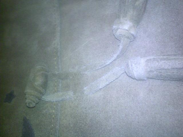 Parasta zomsine rankine dekoruota saule, menuliu ir zvaigzdemis. Deja, dvi zvaigzdes nukrito.