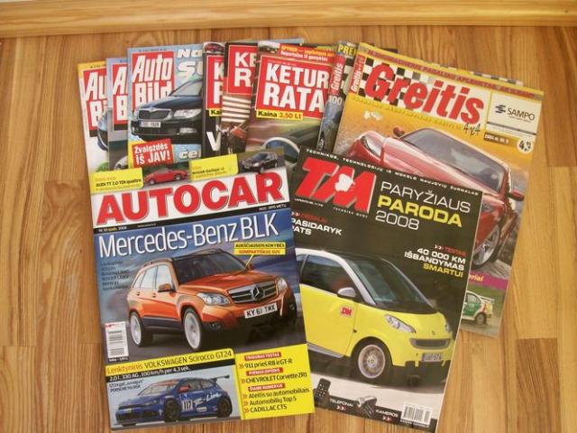 Kazkada skaityti zurnalai apie automobilius. Is viso yra 10. Galiu mainyti visus iskart arba atskirai. Yra AUTOCAR, TM, Greitis, Keturi ratai, Auto Bild.