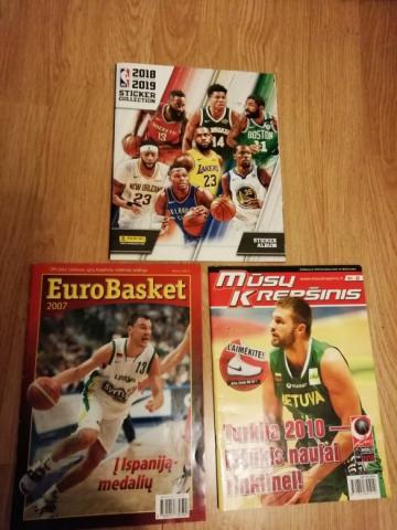 Mūsų krepšinis (su Lietuvos jaunių rinktinės plakatu 2010) nr 32 kaina 2€, Eurobasket 2007 2€, Sticker collection 2018-2019 kaina 2€