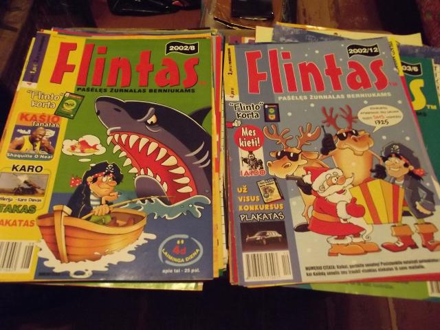 zurnalai flintas, 2000:11, 12; 2001: 1, 2, 3, 4, 5, 6, 7, 8, 9, 10, 11, 12; 2002: 1, 2, 3, 4, 5, 6, 7, 8, 9, 10, 11, 12; 2003: 1, 2, 3, 4, 6. + flinto bumas 2003.01. kai kuriuose nera puses lapu.