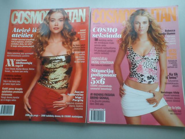 Žurnalai "COSMOPOLITAN" normalaus formato . Turiu 1999 Nr.1-12. 2000 Nr.1 -12. 2001 Nr. 1-10. 2002 Nr.1,2,3,5. 2003 Nr.10. 2004 Nr. 3,4,5,6,7,8,9,10,11 . 2005 Nr.1,11. 2007 Nr.4.6,7,8,9,10,11. 2008 Nr.1, 12.2008-2009 žiema. 2009 Nr. 2,4,5,7,8,10,11,12. 2010 Nr.2,4,5,6,7,8,9. 2011 vasara 2012 žiema Nr.1,3,4,9,10,11. . 2014 Nr. 1,2,3,4,5,6,7,8.