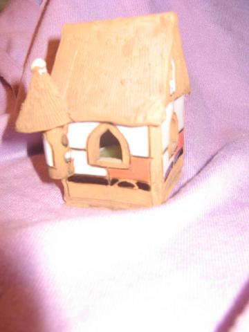 į 'grindis' įsistato maža tabletė-žvakutė, bet gali būti ir tiesiog kaip statulėlė. jei įstačius žvakutę, tai atrodo romantiškai - šviesa sklinda per namo langelius :)..Galimi mainai Kaune, Vilniuje, Klaipėdoje...