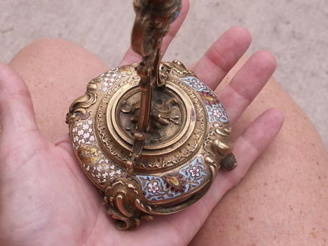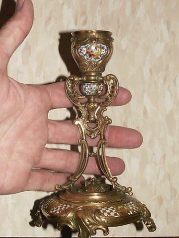 1870m PRANCŪZŲ BRONZA CHAMPLEVE žvakidė