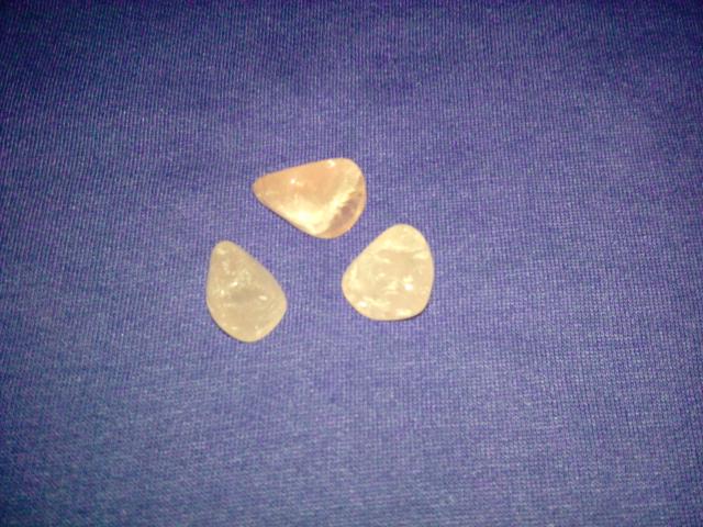 3 rozinio kvarco mineralo akmeneliai