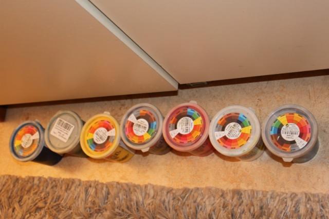 naudota kelis kartus, bet dažai tvarkingi ir labai geri, tinka tapymui. Spalvos: žalia, mėlyna, ruda, geltona, raudona, juoda, balta :]