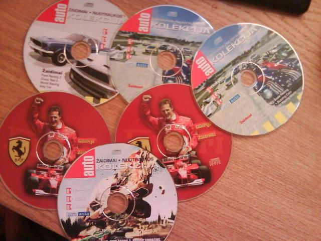 6 diskai. Galima mainyt ir atskirai. Žaidimai: Michael Schumacher Racing World,Flatout,Ford Racing 3,Crazy Taxi 3, World Racing ir kt..