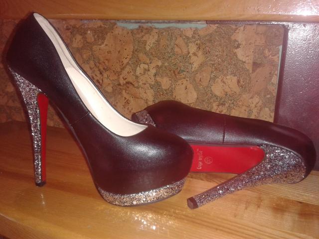 Nauji madingi aukštakulniai, raudonu padu, papuošti blizgučiais. Spalva: juoda Platformos aukštis: 4,5 cm Kulno aukštis: 14,5cm Viršutinė medžiaga: lakuota oda Dydi rašo 37, bet labiau tinka 36 nešiojančioms. P.S. kaina dar derinama :) Detalesnė informacija ir atsiliepimai: http://tarpmergaiciu.lt/items/avalyne/2717293/akcija-nauji-aukstakulniai