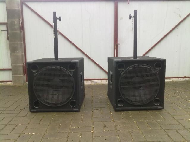 aktyvus 18 coliu subvuferiai. du po 600w. yra stovai satelitams.