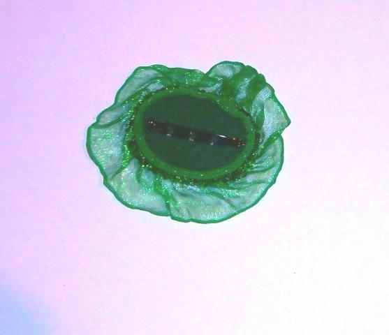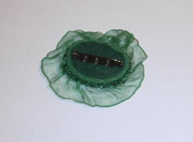 Tamsiai žalia rankų darbo segė. Pagrindas iš vilnos, kuris padengtas plona medžiagėle su lapų motyvu. Nesiunčiu, galima derėtis.