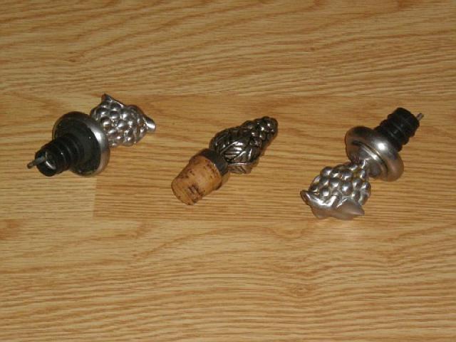 Aliejaus (ar kitokio skyscio) dozatoriai ir kamstis buteliui (vynuogiu formos)