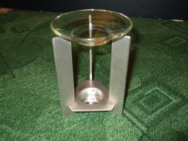 Skirta kvapniesiems aliejams, apačioj dedasi arbatinė žvakutė, viršuj pilasi aliejus :) vietomis šiek tiek matosi rūdys...