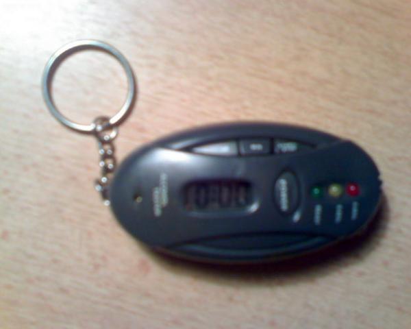 Tikrai veikiantis alkotesteris - raktu pakabukas, bet kad gerai veiktu baterijas teks daznai keisti :)