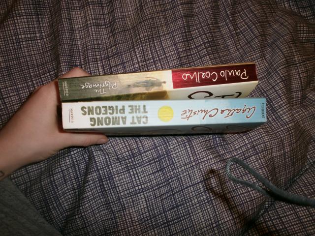 Paulo Coelho "The Pilgrimage" ir Agatha Christie "Cat among the pigeons", abi skaitytos, todėl nugarėlės išsilenkusios, bet šiaip geros būsenos ir įdomios knygos. Tobulinti anglų kalbos žinias.