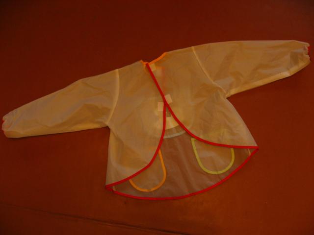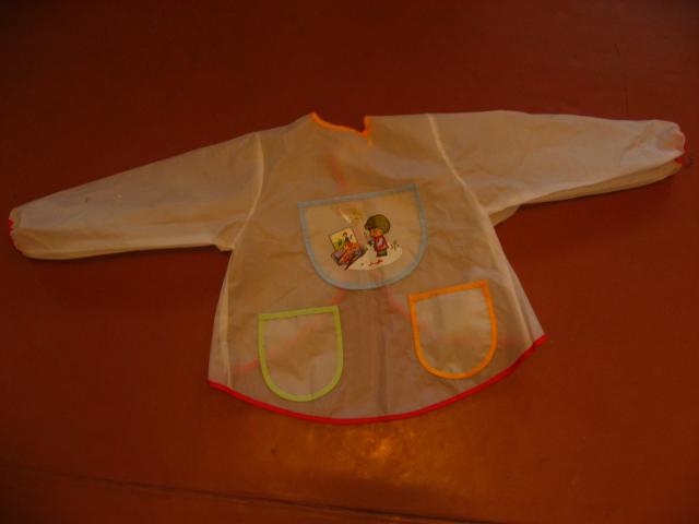 Kad vaiko rubai po piesimo, valgio gaminimo ir tt liktu svarus. Panasaus plastiko kaip duso uzuolaida. Gale uzsisega lipukais. Geros bukles