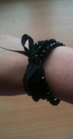 Labai gražios perlų imitacijos apyrankės, perrištos kaspinėliu. Galima jas nešioti ir palaidas, bet man, asmeniškai, gražiau su kaspinėliu (nepykit, mano surištas kaspinukas nevykęs toks, galima perrišti). :) Vieną kart tedėvėta,kaip nauja.:) Pirkta užsienyje