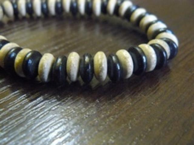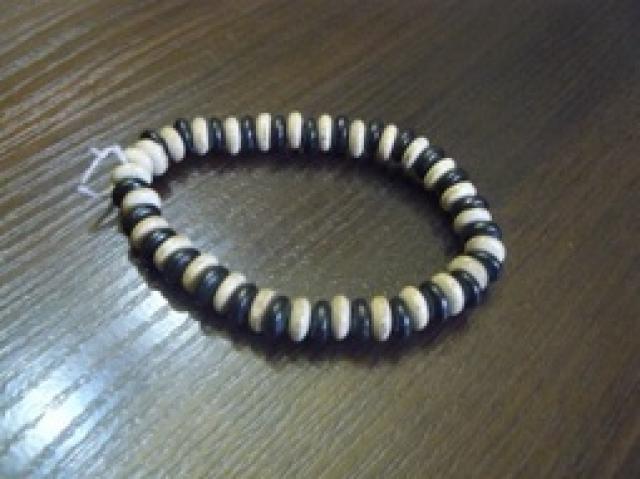 Balti karoliukai truputį nusidėvėję, bet šiaip viskas gerai.