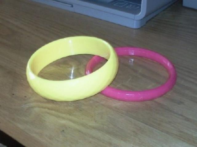 viena plati (geltona) ir viena siaura (rozine) apyrankes