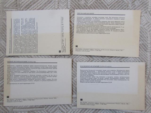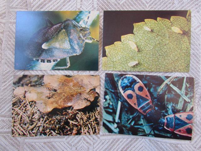 Rusiški sovietiniai atvirukai su vabaliukais - skruzdelės ant ąžuolo lapo, blakė, blakė kareivėlis, amarai. Atvirukai nenaudoti, bet kita pusė kiek pageltusi kampuose nuo saulės. Vieno atviruko kaina- 0, 40 euro. Imant visus 4 - viso 1,30 eur.