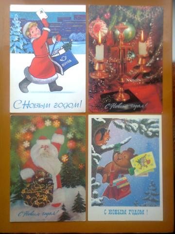 Domina sovietiniai sveikinimo atvirukai , lietuviški naujametiniai ir Kalėdiniai bei Velykų atvirukai.
