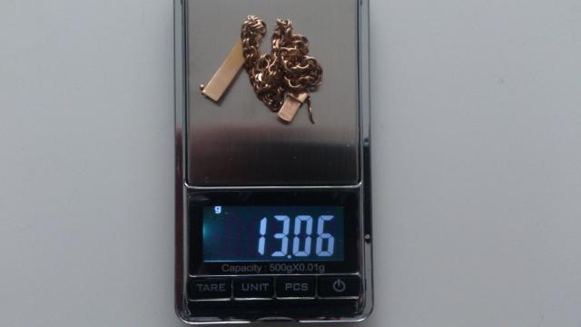 rankos grandinėle, 585 prabos aukso. svoris 13,06 gr