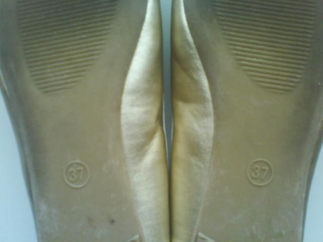 Auksinės spalvos bateliai, keletą kartų dėvėti,parašyta,jog 37 išmera, bet yra tikrai 36, nes aš išsimainiau ir jie man maži visu dydžiu :)