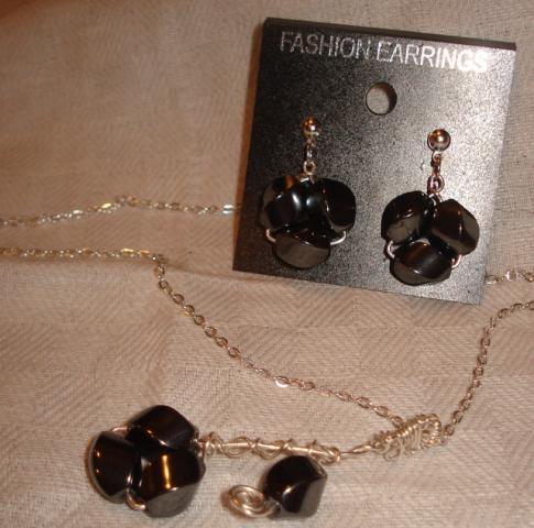 auskarai 17lt ir pakabutis 16lt hematitas www.PapuosaluDizainas.weebly.com