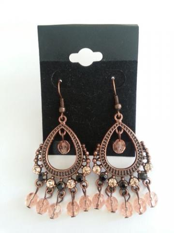 Rankų darbo auskarai. Ilgis: ~ 6 cm. Sudėtis - stiklo karoliukai, vario paskirstytojas ir detalės.
