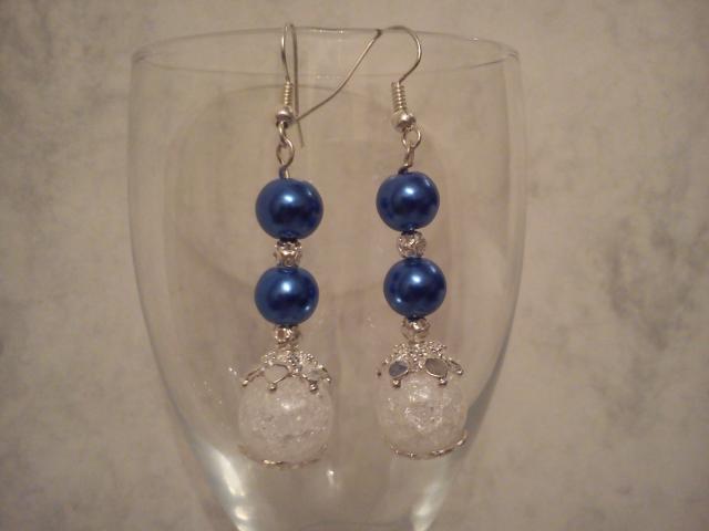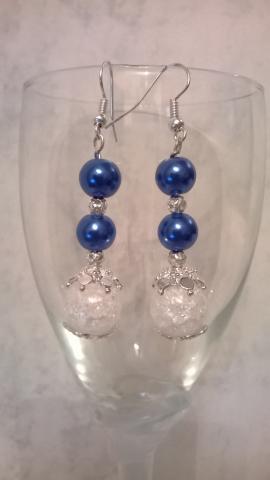 Dailūs, visiškai nauji, vienetiniai rankų darbo baltos ir mėlynos spalvos auskariukai tinkantys pasipuošti bet kokia proga.