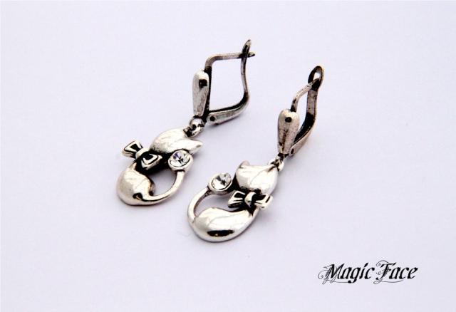 Auskarai "Katiniukai". Sendintos sidabro spalvos auskariukai, inkrustuoti cirkonio akmenukais. Žavingi katiniukai tiks prie bet kokio drabužio ar aksesuaro. Auskariukų ilgis 3 cm, plotis 1,5 cm. Kaina 30 lt. Siunčiu į visus miestus.