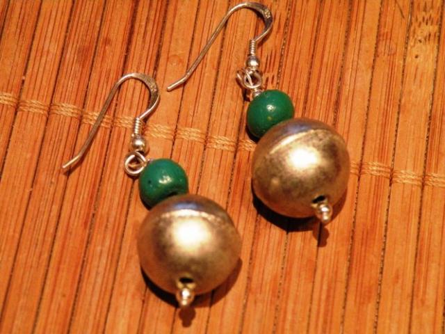 Pati gaminau. Sidabriniai uzsegimai +medinis zalias karoliukas+ metalo burbulas. Lengvi