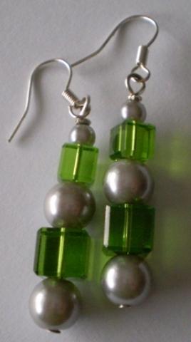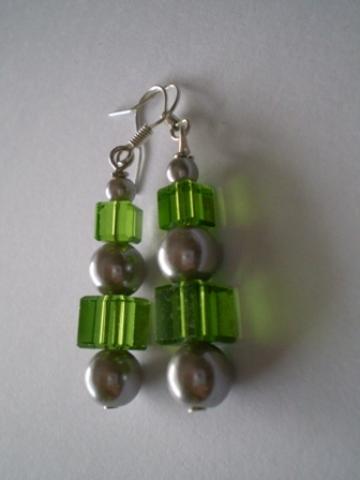rankų darbo. žali kubeliai ir pilki stiklo perliukai