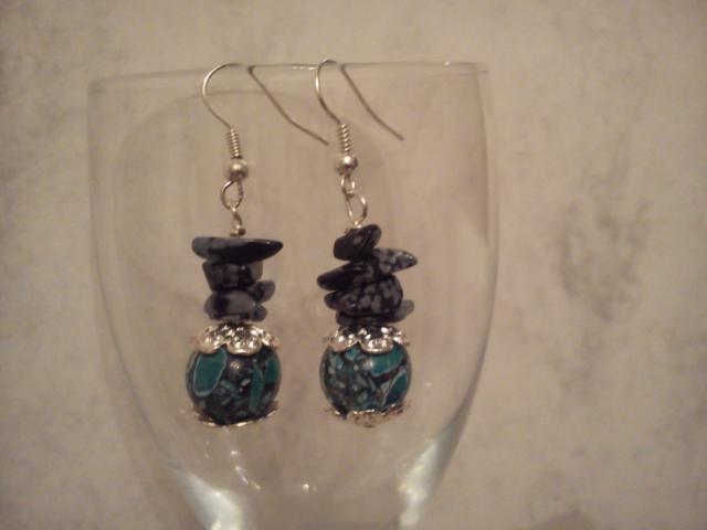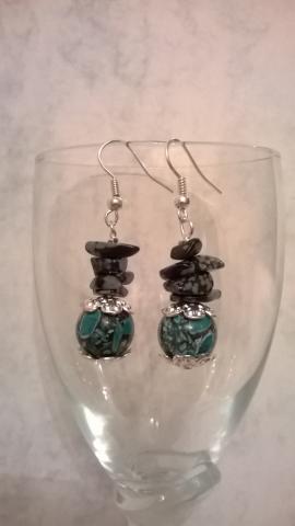 Margi žalios ir juodos su pilkais atspalviais vienetiniai rankų darbo auskarai