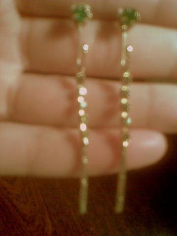 Auskarai beveik nauji deveta vos kelis kartus. Aukso spalvos su zaliomis akutemis. auskaru bendras ilgis apie 6cm