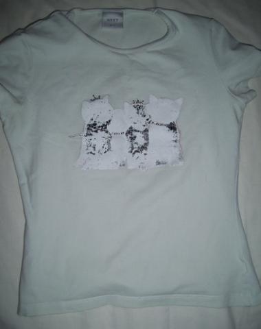 Nauja,nedėvėta balta bliuskutė su aplikacija (kačiukai)