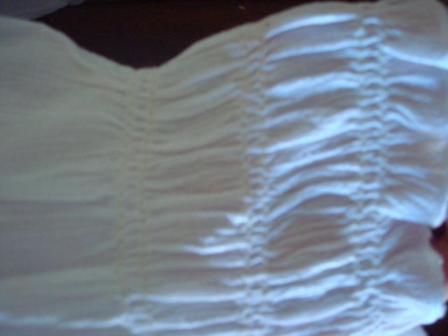 Balta palaidine ilgomis rankovemis, laikosi ant peciu, apacia sutrayukta ant gumutes. Labai tinka vasarai.