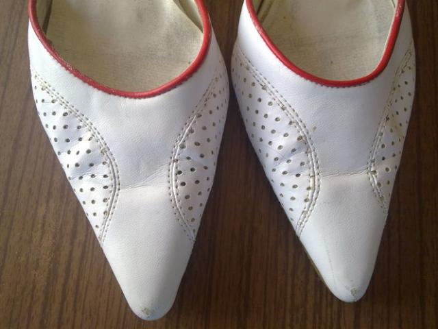 Bateliai jau vidutinės būklės, nes reikėtų pakalti kulniukus. Išskalbus pasitrynė oda - matyti nuotraukose. 37 dydis. Jie švarūs, ten viduje, kur patamsėję, tiesiog nusitrynę :)