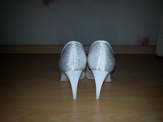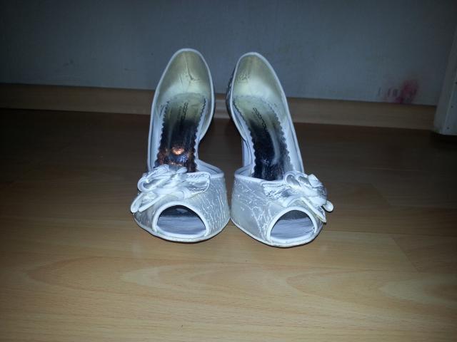 Balti šventiniai bateliai atvira nosyte. Yra defektuku ant kulniukų, tačiau užsidėti buvo tik vieną kartą.