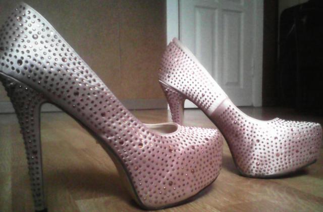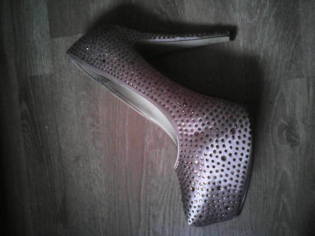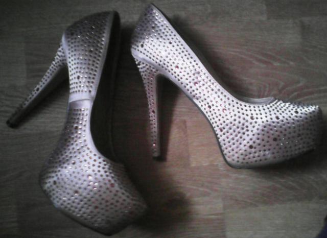 Nauji, stilingi aukštakulniai, nusagstyti visur blizgančiomis akutėmis, kulnų ilgis - 10cm, labai patogus:)