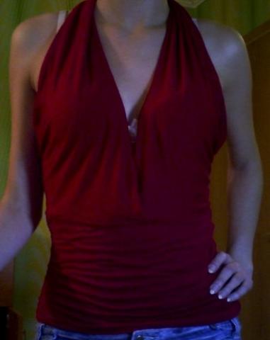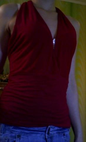 Nuostabi ryškiai raudona (bet akies nerėžia) palaidinė. Puikiai tinka į klubą ir vakarėliams, nugara atvira. Kaklo gale susiriša mazgas.. Dydis labai universalus, nuo S iki L