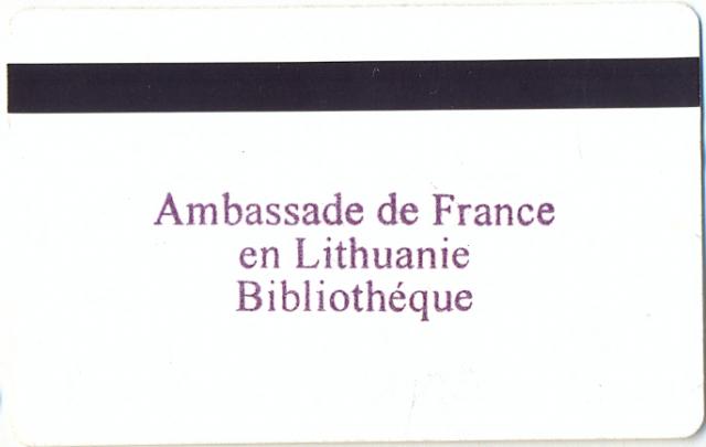 Prancūzų kultūros centro Lietuvoje (Vilniuje) bibliotekos skaitytojo bilietas