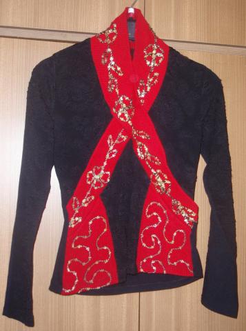 Juoda su raudonais papuošimais, medžiagoje yra elastano.