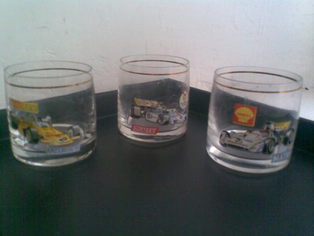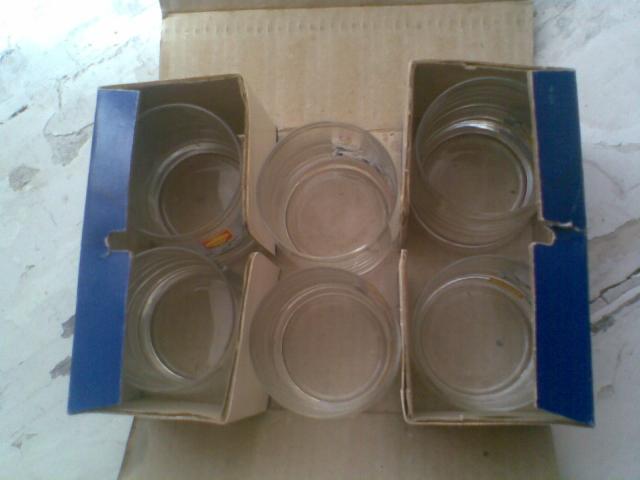 Dar čekoslovakijos gamybos, Bohemia gamybos. Kiekviena stiklinė dekoruota kitokiu lipduku. 6 vnt.