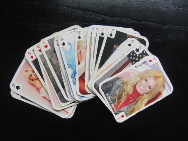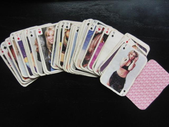 Is Britney Spears atributikos turiu: 36 kortu kalade is zurnalo(su 14 pakaitiniu kortu); 20 kortu is kitokios kortu kalades; 21 senu metu kalendoriuku.