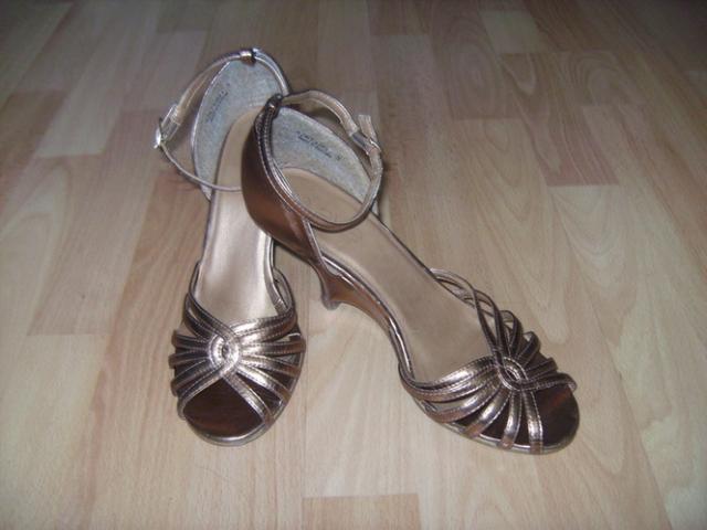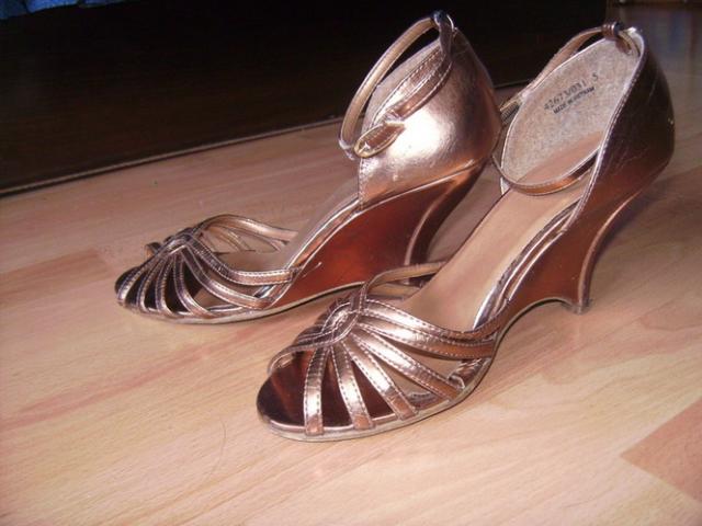 Buvę šokių bateliai, galima ir taip nešioti :) Kaip matote kulniukai truputi nutrankyti apačioje, bet kadangi kulnas išlenktas, dėvint beveik nesimato :) 38-39 dydis