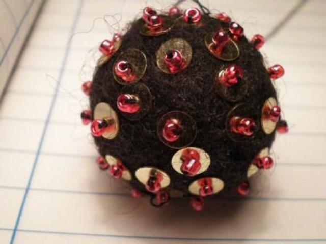 Gali būt pakabukas ant kaklo ar kur tik sugalvosit. siuvinėtas aukso ir daudonos spalvos karoliukais,
