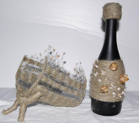 Ranku darbo butelio dekoras, taip pat ir butelio deklas, puiki interjero detale :}
