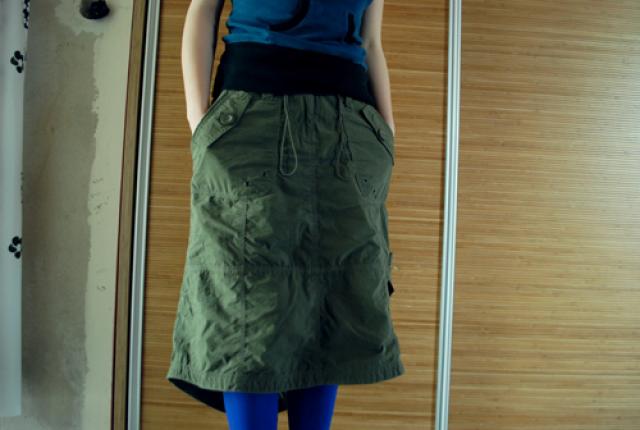 Chaki spalvos, įdomaus pasiuvimo sijonas