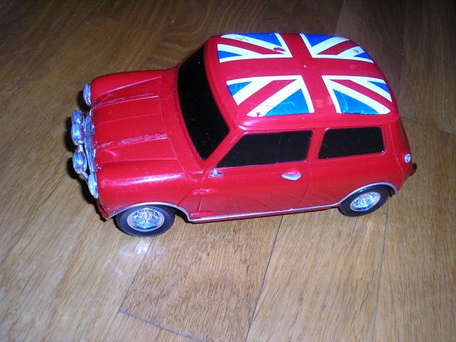 Daili raudona masina, dydis : ilgis 17cm, plotis 8cm, aukstis 8cm. Kazkada veike su elementais, dabar lygtai jau nebe, nera elementu dangtelio.