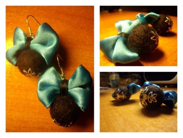 Veltiniai auskarai su geles imitacija,apacioje, ir melinai juodu silkiniu kaspineliu bei ineriamu pakabuku!:)